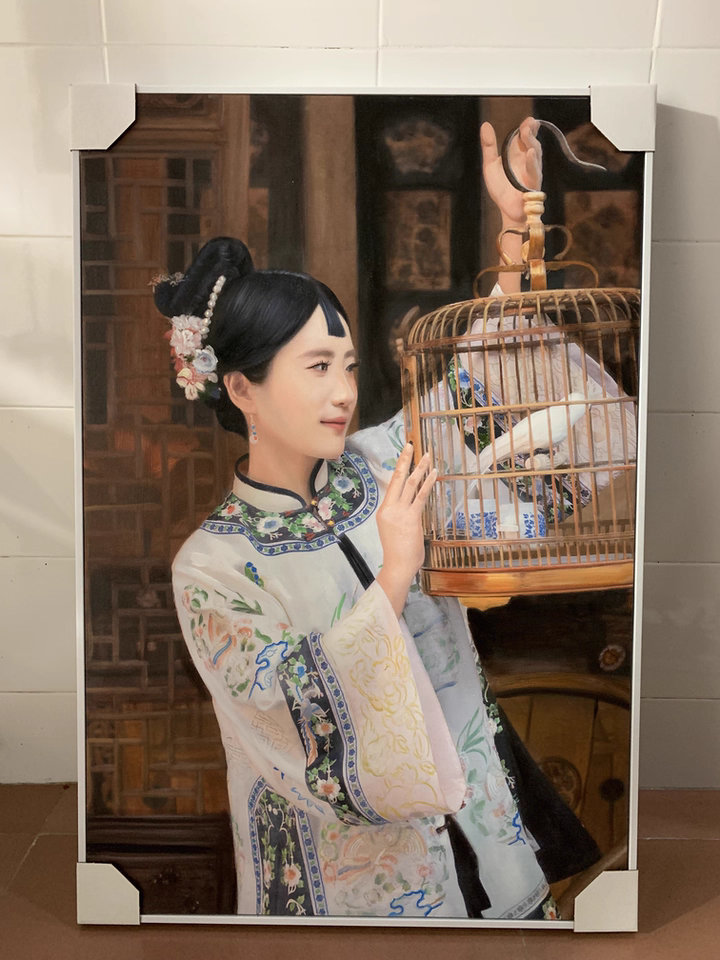 The craftsmanship in this hand-painted oriental portrait is top-tier. Every detail of the silk robe feels real. This is not just a painting, but a high-quality decorative piece of fine art.