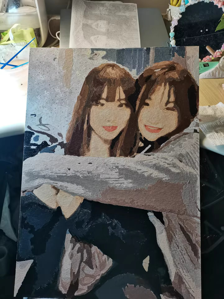 Seeing our laughter captured in this hand-drawn family portrait is so special. The thick paint texture shows it is 100% pure manual painting. It??s a precious memory decoration for our home.